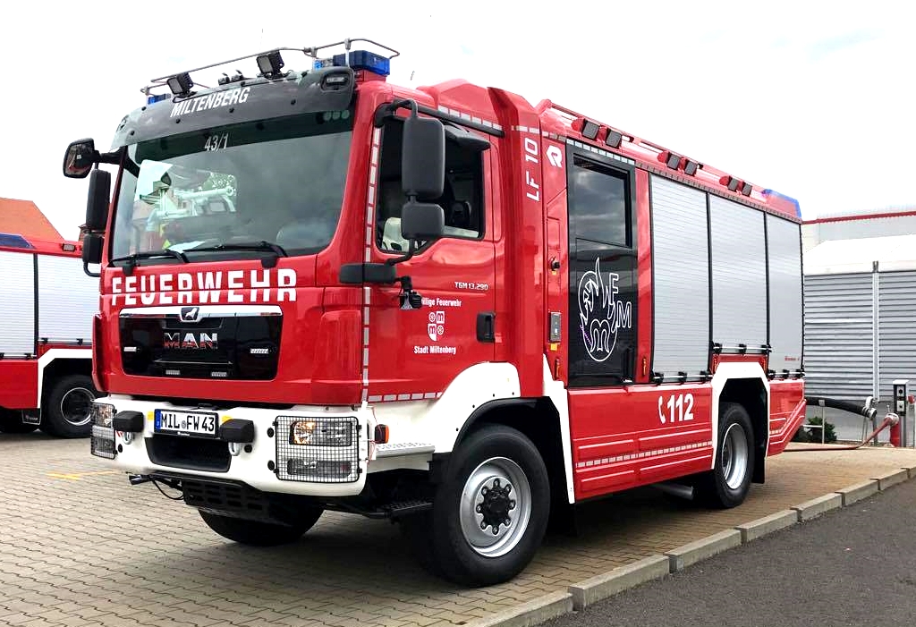 Mitte Juli 2017 hat die FF Miltenberg ihr neues LF 10 im Rosenbauer-Werk Luckenwalde in Empfang nehmen dürfen. Als Fahrgestell dient ein MAN TGM 13.290 mit einem extra kurzen Radstand von 3600 mm. Auch bei der Bauhöhe des Fahrzeugs wurden 3.100 mm nicht überschritten. So passt das Fahrzeug perfekt in die enge Altstadt Miltenbergs und kann auch Einsätze auf der Burg fahren. Das Fahrzeug transportiert 1.600 ltr. Löschwasser zur Einsatzstelle.