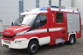 Rosenbauer fertigte das MLF als CL-Aufbau auf einem Iveco Daily 72-170 Straßenfahrgestell.